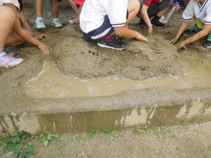 生活科「なつだとびだそう」では、水や砂、土を使って遊ぶ活動をしました。