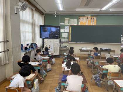今日は、次回の学区別調査についてオンラインで4クラスをつなぎ学習を進めました。何を目的として、調査に行くのかということをしっかりと考えることができました。見学に行くだけではなく、「歴史を調べる」ことが大切であるということを共通理解することが出来ました。学習の最後には7学区別に集まり、次回の学区別集会の詳細の説明をしました。子どもたちは早く調査に行きたい様子でした。