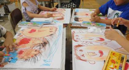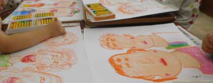 おじいさんやおばあさん、家族と楽しく過ごしている場面を思い出してかきました。楽しさがよく伝わってくる、すてきな絵が完成しました。