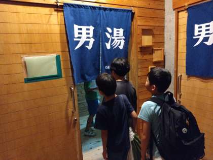 みんなできまりを守りながら入浴しました。「今日の疲れが癒やされるね。」「みんなで入ると楽しいね。」など、みんなで大きなお風呂に入る楽しさを味わいました。