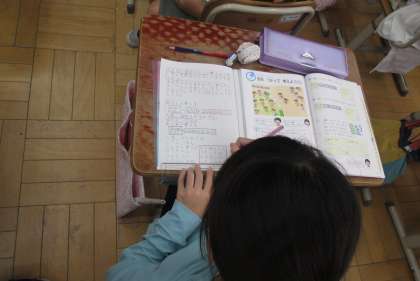 算数科ではひっ算の学習が終わり、「図をつかって考えよう2」の学習をしています。じゅんに考えてやるやり方やまとめて考えてやるやり方など、自分が理解しやすいのはどちらかを考えながらノートに図を書くことができました。