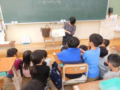本日は、クラスみんなで朝から楽しみにしていた「おはようおはなし会」でした。読んでいただいたのは、「いかりのギョウザ」という絵本です。休み時間には、「フライパンが喋ったところが面白かったね!」「いかりの火で焼くなんてすごかったね!」など子供達同士で楽しそうに話している姿が見られました。図書室と歩む会の皆様、いつも選書から読み聞かせまで本当にありがとうございます。また次回も楽しみにしております。