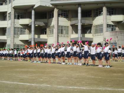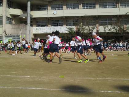 50メートル走に玉入れ、団体演技どの競技においても全力で取り組む姿が素敵でした。特に団体演技では、学年目標の「わっか」の学年目標通りに、心を一つに踊っている姿が印象的でした。