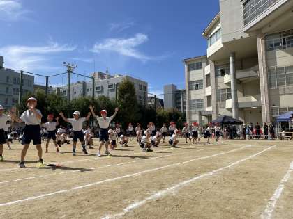 交流競技の大玉転がしでは、4年生と協力し素晴らしいタイムで終えることができました。子どもたちはベストタイムを出し大喜び。ほほえましい競技となりました。
