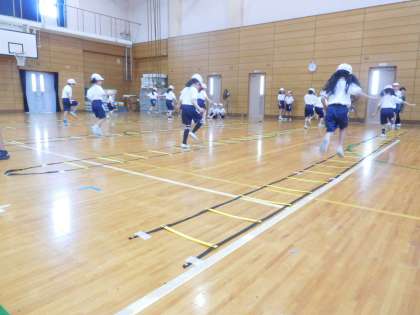 スマイル体力向上部会の方の指導で、基礎的な運動能力を学習するためのプログラムに取り組みました。
