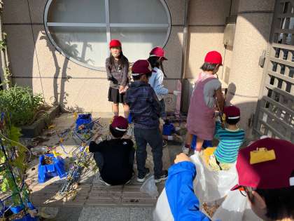 本日は、春先に植えた「あさがお」とお別れの会をしました。活動の様子から、それぞれのお花とのたくさんの思い出をしみじみ感じている姿が伺えました。この後は、来年の入学式のためにチューリップを植える予定です。早いもので、もう1年の終わりが僅かながらに見えてきました。これからも一層頑張っていきますので、今後とも何卒よろしくお願い致します。
