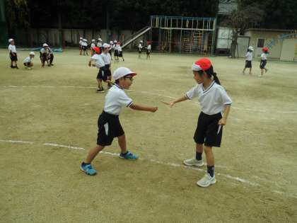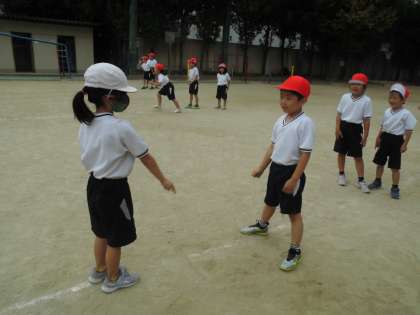 今週の体育は「じんとりあそび」の学習をしています。今日はじんとりあそびの一つ、「どんじゃんけん」をしました。まっすぐコースやくねくねコースで遊びました。「前の人がどこまで行ったかしっかり見とかないといけない。」「カーブのところはスピードを落とすと上手く走れる。」と勝つためにはどうしたらいいか考えながら楽しんで取り組んでいました。