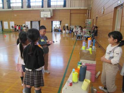 子どもたちは、これまで生活科で楽しみながら「おもちゃ作り」の学習を行ってきました。今日は一年生を招待しておもちゃフェスティバルを開きました。一年生に対して、遊び方を優しく教えてあげる姿も見られすっかりお兄さん、お姉さんの顔になっていました。一年生もすごく楽しんでくれていたので、おもちゃフェスティバルは大成功でした。