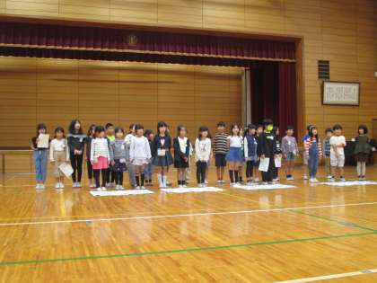 木曜日にある人権集会に向けて学年で集まり、練習をしました。各クラスで代表者が発表をしたり全員で歌を歌ったりしました。これまではクラスごとでの歌の練習でしたが、学年全員で合わせると歌声もとてもきれいでした。