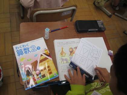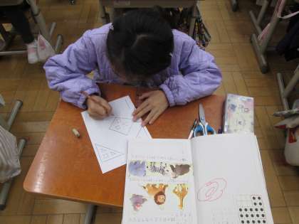 算数は「三角形と四角形」の単元に入りました。今日は三角形や四角形の定義を確認した後、定規をつかって三角形や四角形をかきました。新しい単元のはじまりでワクワクしている様子でした。