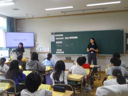 外国語科の学習で、京都御池中学校にいらっしゃるALTの先生と出会いました。新しく出会うALTのアンバー先生に、みんなは興味津々でした。