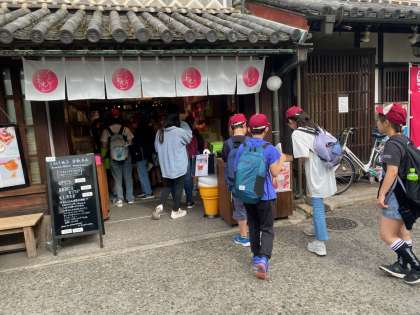 倉敷美観地区に来ています。素敵な建物やたくさんのお店が並ぶ中、子ども達はどんなお土産を買おうかと悩みながら、元気に活動しています。