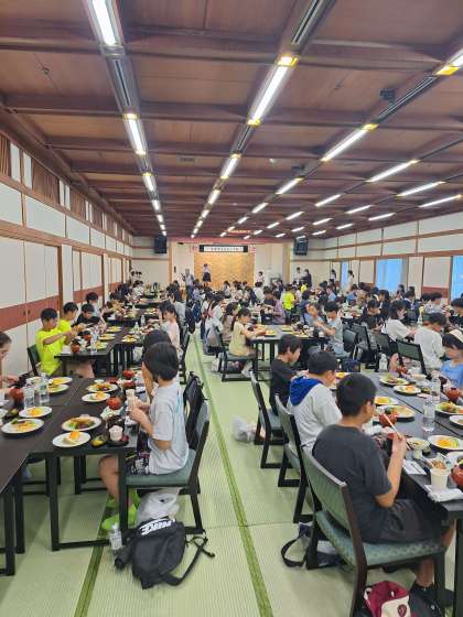 1日の疲れを癒してくれる豪華なメニューを目の前に子どもたちは大喜びの様子です。