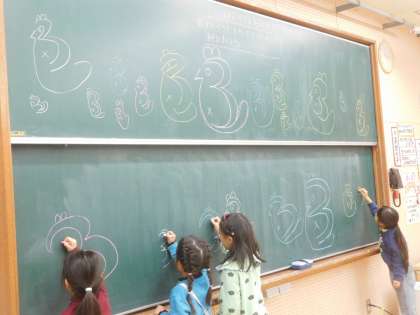 みんな大喜びで、たくさんのたぬきを描きました。