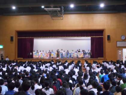 生徒総会では、各委員会の委員長から活動方針についての発表や生徒会予算についての説明がありました。その後、各学年からの要望や採決、各学年ごとに学級旗の紹介を行いました。発表の担当に当たっていた子達は、ステージ上で堂々と大きな声で発表することができていました。