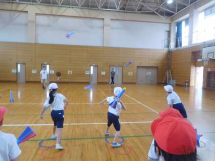 体力向上プログラムでロケット投げやボールキャッチに取り組みました。