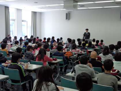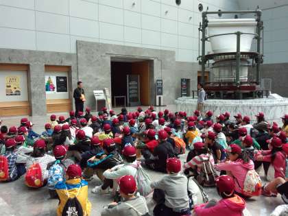 産業技術記念館に到着し,館内の説明を受け,見学をしています。紡績・自動車の歴史・技術革新の変遷などを展示や実演を通して学んでいます。テクノランドでは実際に遊びを通して学んだり,体験工房では作りながら学んだりすることができます。
