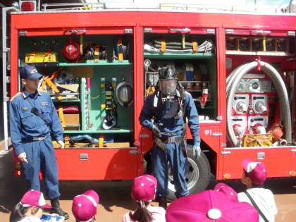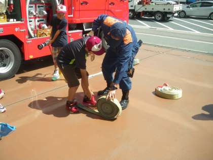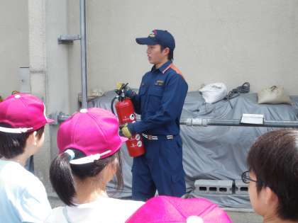 9月9日(月),中京消防署に社会科見学に行ってきました。中京消防署では,消防全般の仕事についてお話を聞いたり,実際の消防車を前に仕組みについて学習したり,消火器を使っての消火訓練をしたりしました。見学前に立てていた予想とは全く違って驚いたという児童も多く,疑問に思ったことは質問をしながら真剣に話を聞いていました。