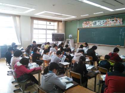 一方6年生は,ふだん使っている教室を5年生に明け渡し,高倉登校となりました。久しぶりの高倉小学校での生活に懐かしさを感じている様子がうかがえました。中間休みには運動場で元気よくクラスの友達と大縄をしていました。体がとても大きくなり,運動場が狭く感じるほどでした。2日間と短いですが,高倉小学校での生活を存分に楽しんでほしいと思います。