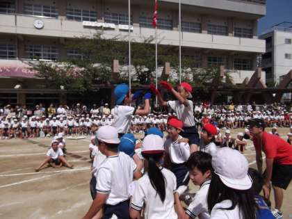 4年団体演技「いくぞ!やるぞ!ソイヤ!」では,ソーラン節の力強さと息の合った演技を見せてくれました。「3色対抗リレー(低・高学年)」では,学年を越えて協力し,最後までバトンをつなぐことができました。5年団体競技「戦国無双 高倉秋の陣」では,個人戦,団体戦,大将戦と迫力のある競技に,会場も大いに盛り上がりました。