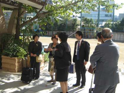 24日(金)に静岡県の「地域とともにある学校づくり検討委員会」及び静岡県教育委員会の7名の方々が本校へ来校されました。京都市や本校の「学校運営協議会」の取組等に関して,京都市教育委員会の方々と共に説明をしたり質問についてお答えしたりしました。本校にとっても「スマイル21プラン委員会」の取組等について振り返るよい機会となりました。