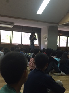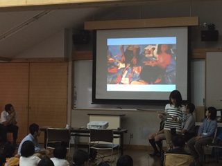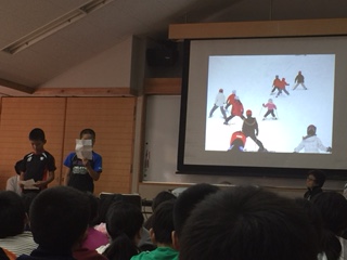 先に,花背小中学校の紹介がありました。高倉とは違う学校の様子に子どもたちは驚いたようで,興味津々でした。
