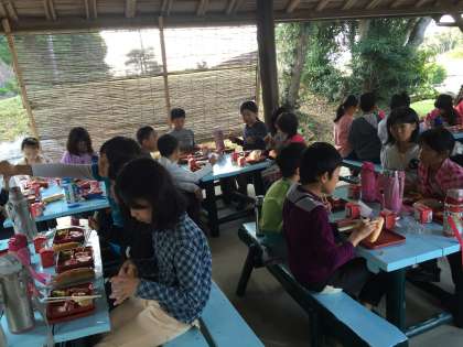 昼食の時間です。浦山ラリーでたくさん体を動かして,おなかも減っていたので,あっという間に完食でした。