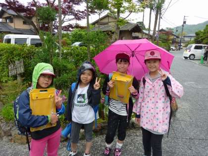 5年生は嵐山・嵯峨野方面へ行きました。現地では、班ごとに分かれてクイズラリーをしました。行く前から班でめあてを考え,役割を決めていました。どの班も一人一人が役割を果たし,みんなで協力してクイズラリーをすることができたと思います。今後の学校生活の中でも,今日のようなみんなで協力する姿が多く見られることを楽しみにしています。