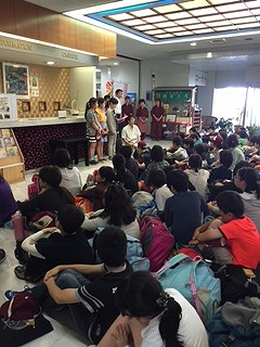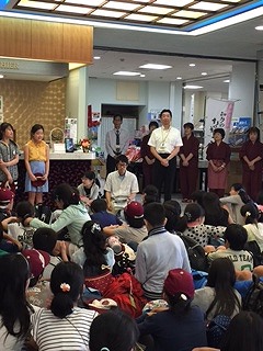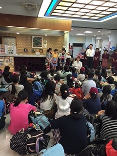 出発式を行いました。ホテルの方々にお礼を言い,予定より少し早めに「リニア・鉄道館」に向けて出発しました。