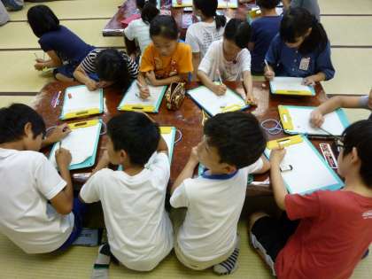 今年生誕300年を迎える日本画家,伊藤若冲について,京都市美術館の学芸員である尾崎様と,宝蔵寺住職であり第8代PTA会長である小島様に来ていただき,お話をしていただきました。伊藤若冲の生家が高倉小学校の近くにあったことや,どんな技法を用いて作品を仕上げていたか,教えていただきました。自分たちの住んでいる校区に,素晴らしい偉人がおられたことに驚いている子や,作品の美しさに感動している子もいました。今後,本日教えていただいた伊藤若冲の構図や技法を参考にし,「伊藤若冲が祇園祭を描いたら」というテーマで,作品を作っていこうと考えています。