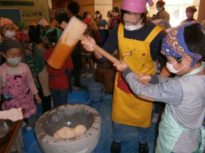 もちつき体験をしたことがない子どもが多く,とても貴重な経験になりました。ボランティアの保護者の方々,本当にありがとうございました。