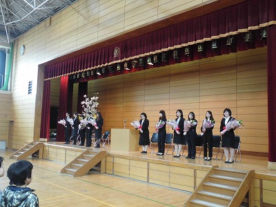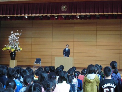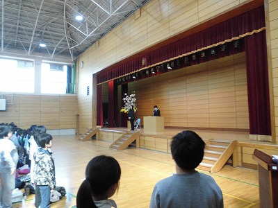 3月30日(木)管理職教職員離任式・管理職着任式を行いました。教頭先生をはじめ,15名の教職員とのお別れをしました。今までのことを思い出しながらおひとりおひとりからのお話を聞きました。また,新しい教頭先生をお迎えしました。