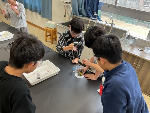 御池校舎では、中学校の先生が理科の授業をしてくださいました。