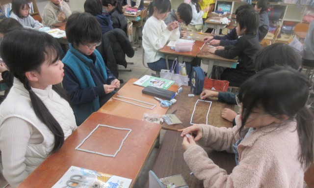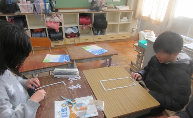 ストローをつなげていろいろな長方形を作りました。