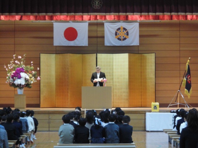 式では、校長先生より『ドキドキドン!1年生』の歌に合わせて、「学校は楽しく学び、安心して過ごす場所であること」や「友達と助け合いながら成長していってほしい」などの温かいメッセージが贈られました。また、担任発表では、子どもたちは期待に胸をふくらませながら耳を傾けていました。また、地域の方から高倉帽を代表の児童が受け取った際には、きらきらした表情の子どもたちの姿がありました。