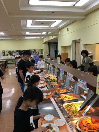 他の団体が帰られたので,レストランは貸切状態です。洛中小学校のためだけにバイキング料理が用意されました。そのありがたさが充分わかったようで,とても大きな声でご馳走様が言えました。