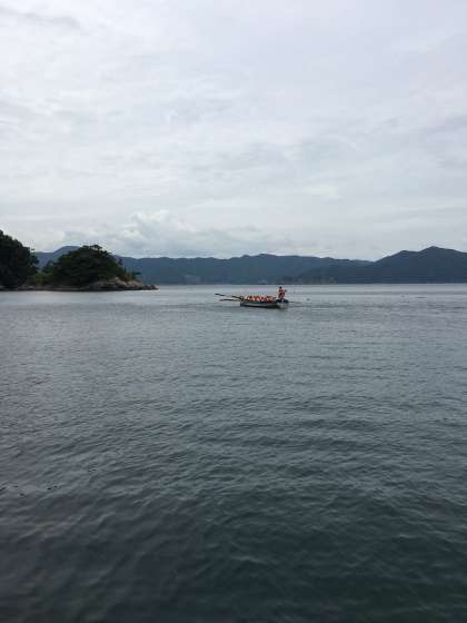 「ソーレソーレ」の掛け声と共にカッターが小さくなって行きました。風が出てきました。腹筋700回したら帰って来られるそうです。それを聞いた時のみんなの顔は少し不安そうでした。でも力を合わせて漕がないと帰って来られません。