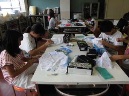 5年生の家庭科は乾先生に担当してもらっています。今日は玉止め,玉結びなどを習った後,自分の名前を縫い取りしました。なかなか上手にできませんがあきらめずこつこつ頑張っていました。