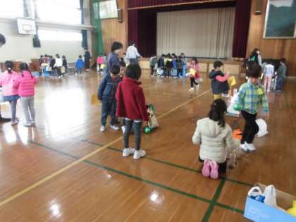 拾ったりもらったりしたドングリを使ったり,上手に廃材を利用したりしておもしろいゲームを考えていました。アイディアあふれるコーナーがたくさんあって園児さんも楽しそうでした。