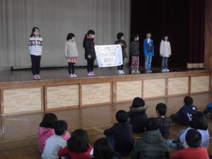 最後に1月の人権目標の発表がありました。1年生が「お互いのことを知り認め合おう」ということをクラスで話し合って自分が考えたことを発表してくれました。