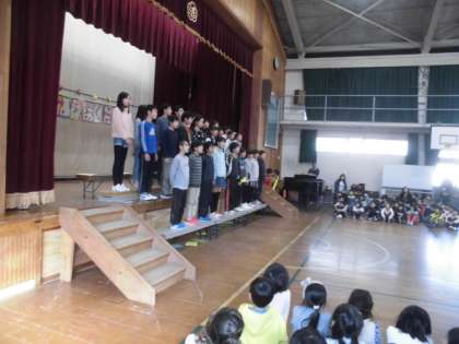 5年生がまとめた各縦割りグループのみんなからの手紙をもらって子ども達はじっくりと読んでみんな笑顔になりました。