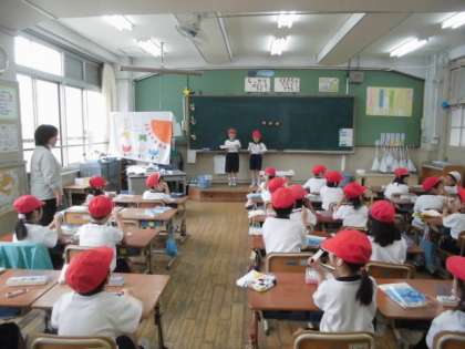 算数の入門は具体物と半具体物を結びつけます。いろいろなものの数を数図ブロックで示して数を言っています。5までの数は目で見て数えられるようです。楽しそうに学習していました。