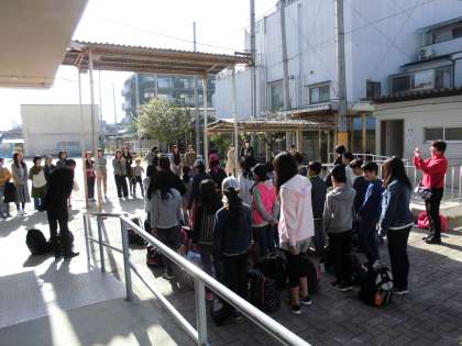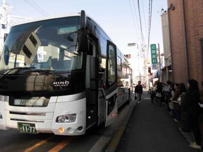 お家の方に見送られて,バスで名古屋に向けて元気よく出発していきました。