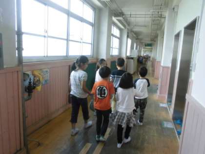 縦割りグループが決定して初めての縦割り給食の時間です。今年は赤白各8グループに分かれて担当の先生の教室に移動して食べます。低学年が多く,高学年が少ないので4年生以上で配膳をします。3年生が1年生を迎えに行ってくれました。