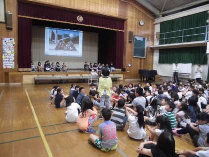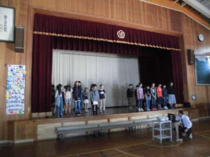 6年生が4月に行った修学旅行のことを全校のみんなにお話しました。写真をバックにそれぞれの場面を紹介したり,思ったことなどをノー原稿で言ったりしました。他の学年からもたくさん感想が聞けました。新5年生の計画委員さんも緊張の司会デビューでした。