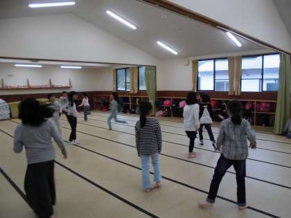 雨が降っているので浦山ラリーは中止になりました。所内ラリーをしようと思いましたが思いのほかシング準備に時間をとったので90畳の和室でみんなで遊びました。ハンカチお年で盛り上がりました。