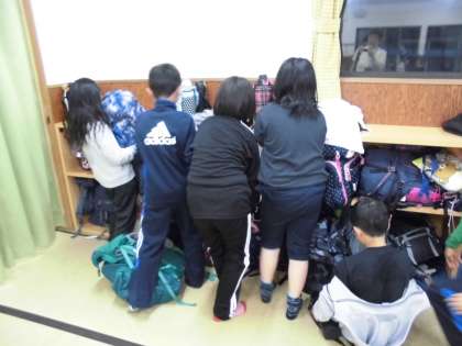 みんなで声を掛け合って5分前に集まったり,集まったら班ごとに並んだりするのが少しずつ上達しています。しかし,荷物整理,管理はまだできないことが多く,誰かの荷物がはみ出ていたり,忘れられています。がんばれ、4年生。