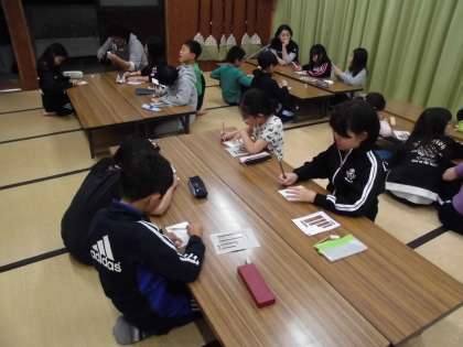 家族の方に手紙を書いています。子供たちは内緒のつもりかもしれません。ついたら驚いて喜んであげてください。一生懸命書いていました。
