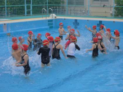 お互いに水をかけたり,水中を歩いたりして,楽しく水遊びをすることができました。