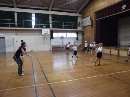 毎週金曜日がバレーボールの活動日です。地域の先生にも来ていただき4年生以上で練習に励みます。何事も基礎基本が大事。パスやサーブの練習を一生懸命がんばっています。